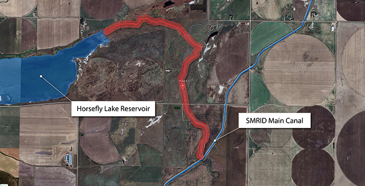 Location: From the SMRID main canal to the Horsefly Lake Reservoir