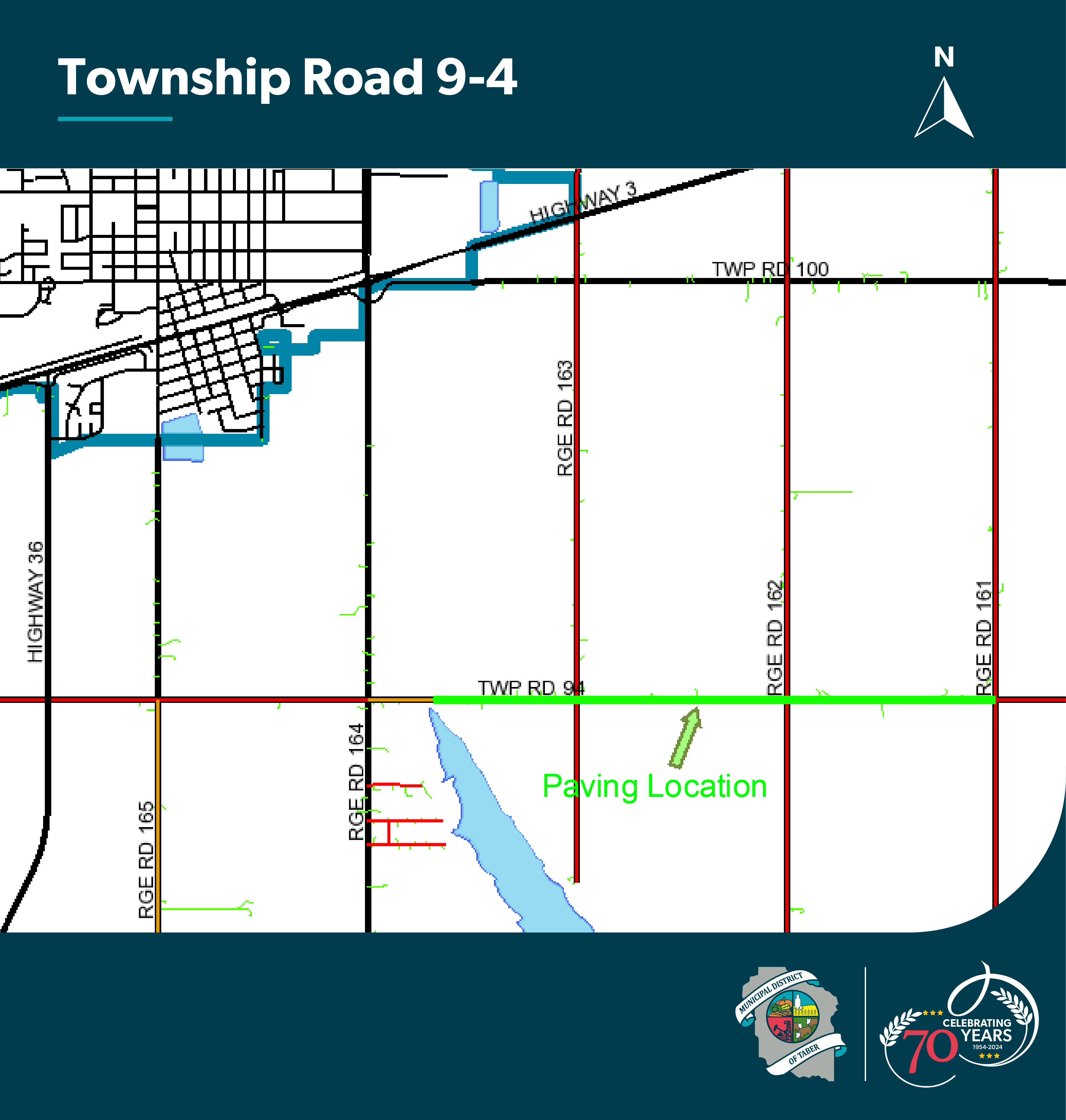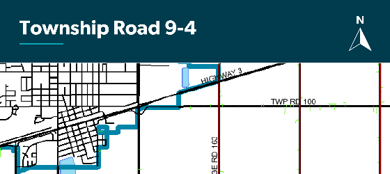 Please be advised that paving construction on Township Road 9-4, from Range Road 16-1 to Range Road 16-4, is scheduled to take place from Monday, July 15th, to Friday, July 19th. Traffic will be reduced to a single lane for the duration of the project. Please follow all signage and designated traffic routes, plan your travel accordingly, and drive safely.